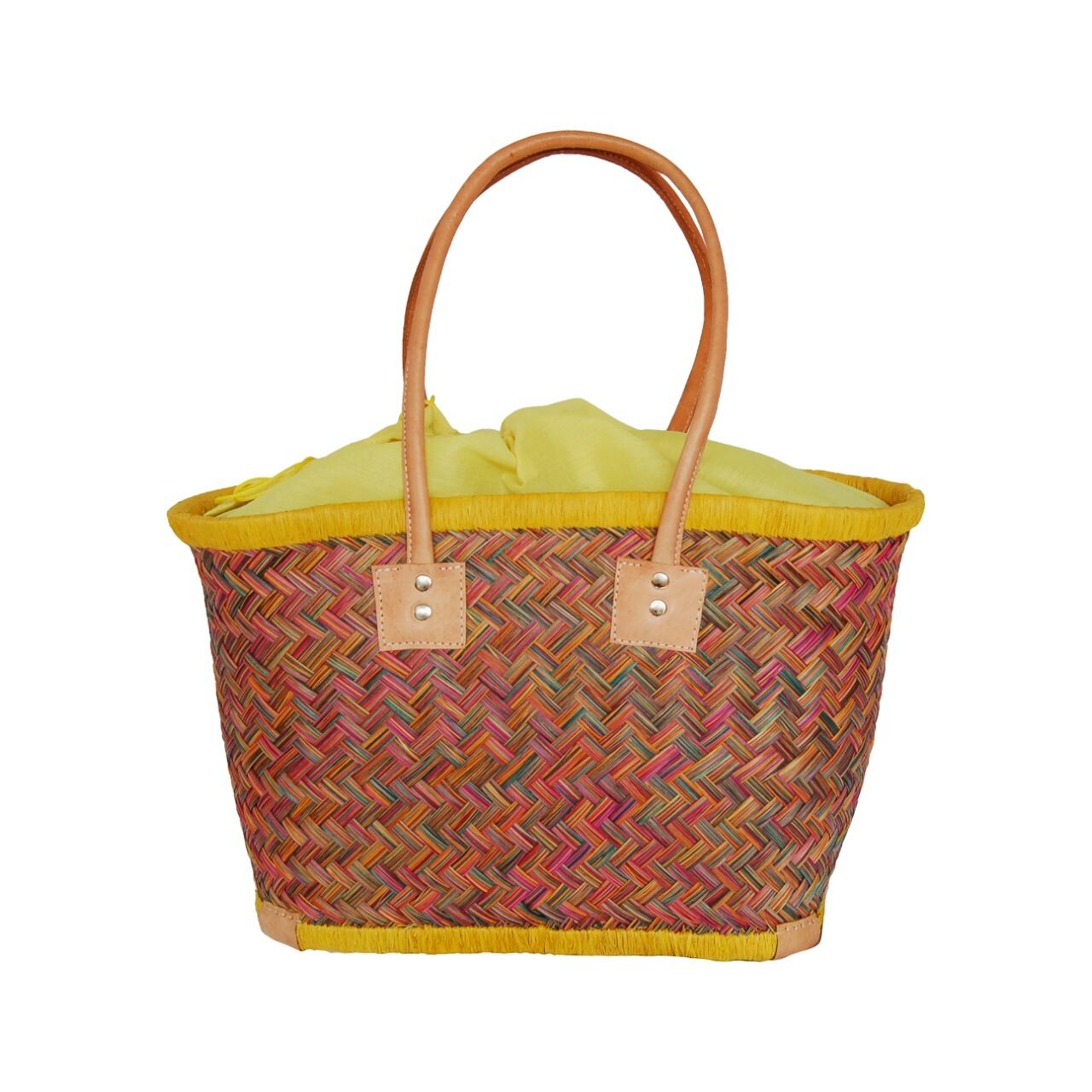 F様専用 アウトレット品【かごバッグ】パニエM / ロングハンドル_インナーバック付き Yellow mix /マルシェバッグ
