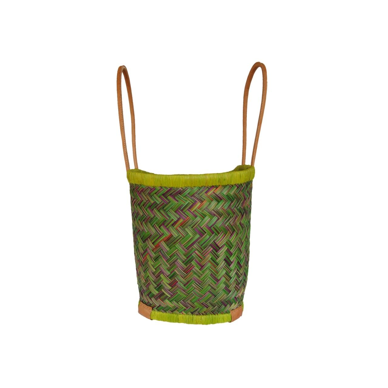 【かごバッグ】M パニエM / ロングハンドル Yellow green x Purple /マルシェバッグ