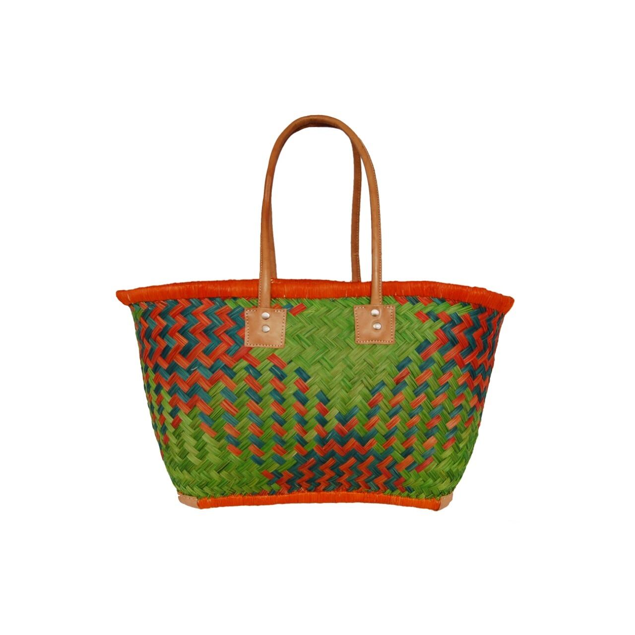 【かごバッグ】M パニエM / ロングハンドル Orange x Yellow green x Turquoise /マルシェバッグ