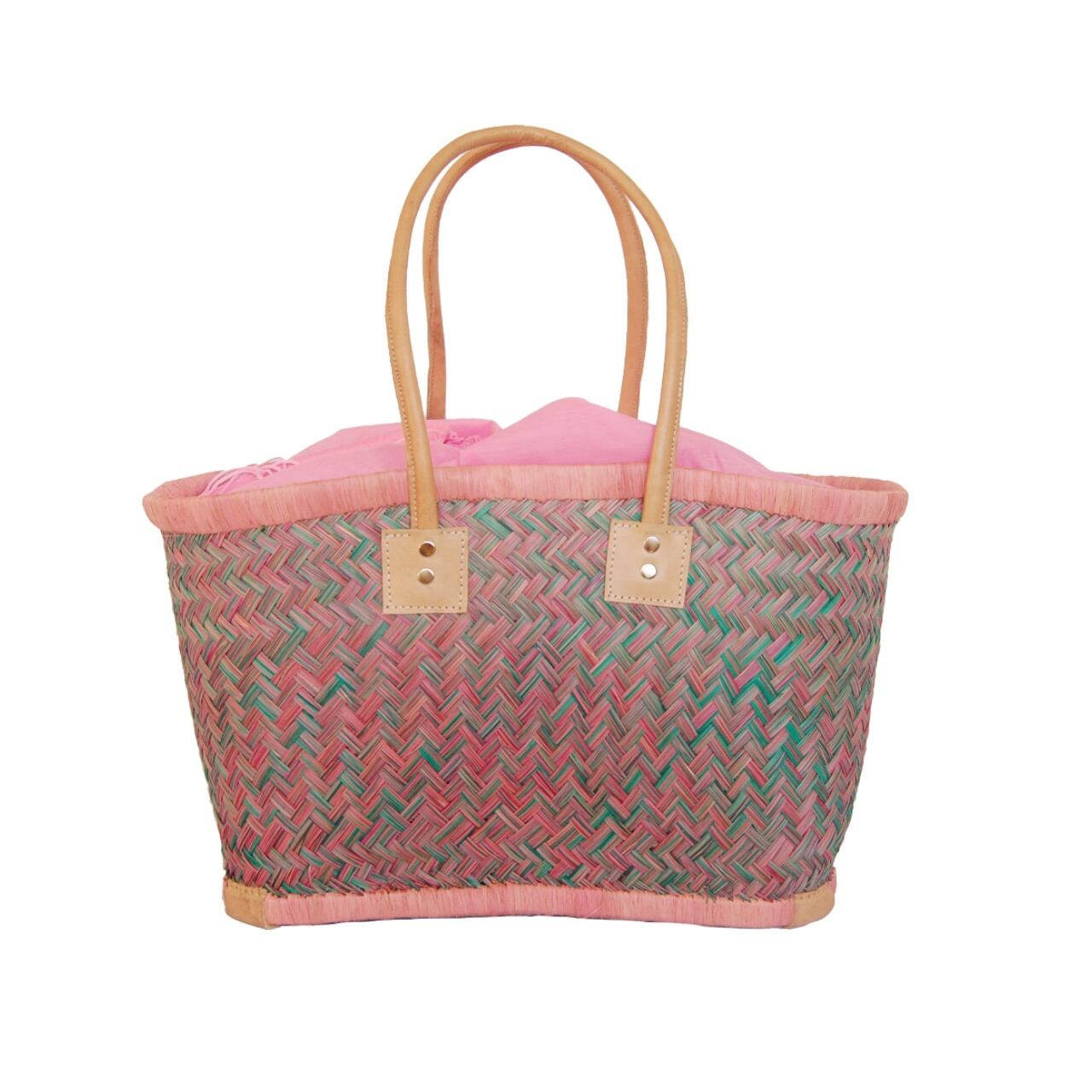 【かごバッグ】パニエM / ロングハンドル インナーバック付き Pink x Turquoise /マルシェバッグ