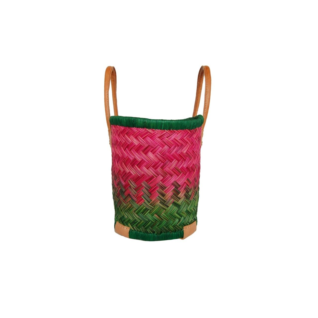 アウトレット品【かごバッグ】S パニエS / Green x Pink / マルシェバッグ
