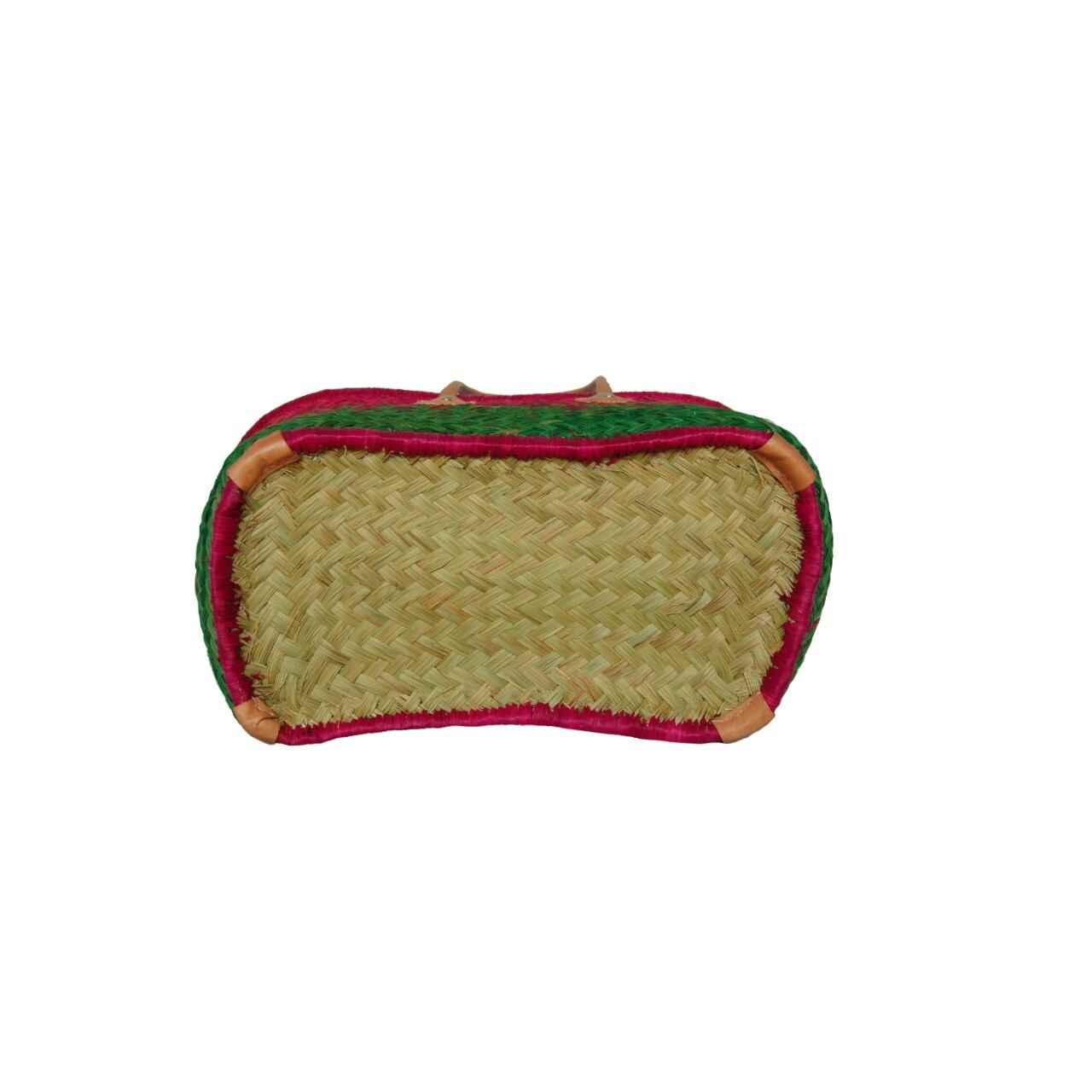 【かごバッグ】M パニエM / ロングハンドル Pink x Green Yellow /マルシェバッグ